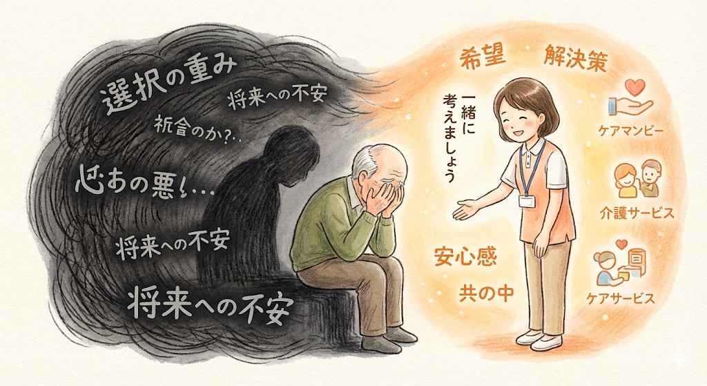 老老介護は、身体的な負担だけでなく、日々の「判断の重み」が介護者の心をすり減らしていきます。「このままでいいのか?」「いつ施設に入れるべきか?」-答えの出ない問いを家族だけで抱え込んでいませんか? こ…